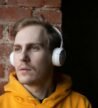 A person is wearing a vibrant yellow and teal traditional saree with intricate patterns. The background consists of dark curtains, suggesting an indoor setting. The person is smiling and appears to be posing elegantly, adorned with jewelry, including earrings and a necklace.